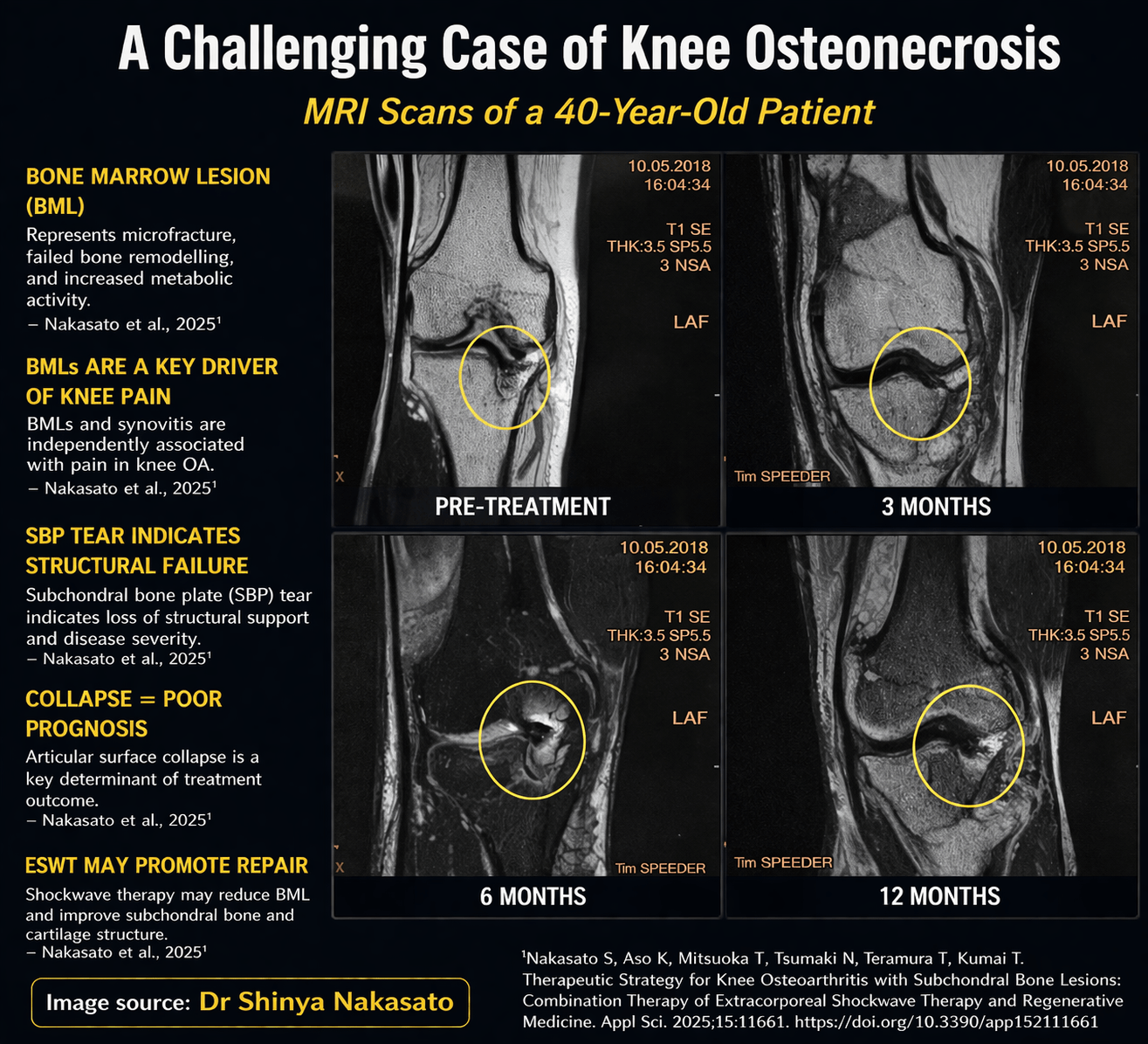 Dr Shinya Nakasato (N Clinic / Waseda University, Japan) has spent ten years building something rare — a clinically and histologically grounded framework for knee OA with subchondral bone lesions, supported by serial MRI data collected in real patients over a decade.